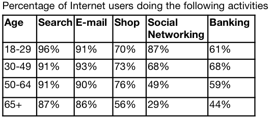 The Pew Research Center shows some interesting numbers in Figure 2. Social networking is the most variant between different age groups, with very low (65+; 29 percent) adoption of social networking. This difference in social behavior opens up some quite different avenues for communication—for example, social communication, and potentially a need for looking at innovation around social networking for the younger customer.